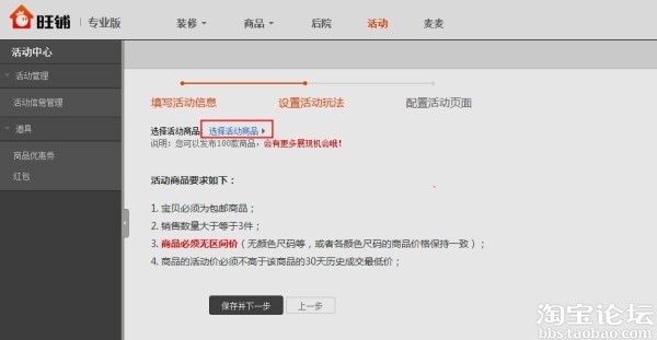 活动类型:请根据活动类型选择“天天特价店铺活动”或“店铺清仓”活动。