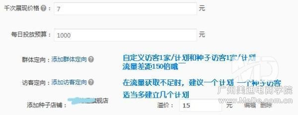 新建多个访客定向——单个种子访客一个计划,预算500-1000一个计划,CPM溢价调低!